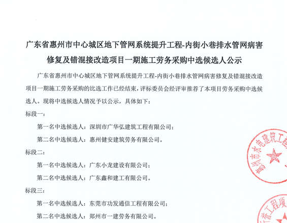 惠州市水電建筑工程有限公司成立于一九六四年四月,隸屬惠州市水務集團有限公司,是一家國有綜合性施工企業(yè),主營水利水電工程、房屋建筑、市政工程等施工業(yè)務。公司擁有水利水電工程施工總承包一級、建筑工程施工總承包一級、市政公用工程施工總承包一級、公路工程施工總承包三級,公路路基、路面及建筑裝修裝飾專業(yè)承包二級,環(huán)保工程、機電安裝、河湖整治、輸變電工程專業(yè)承包三級等經(jīng)營資質(zhì)……
